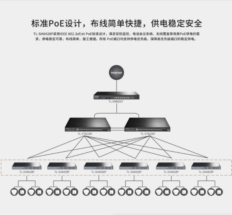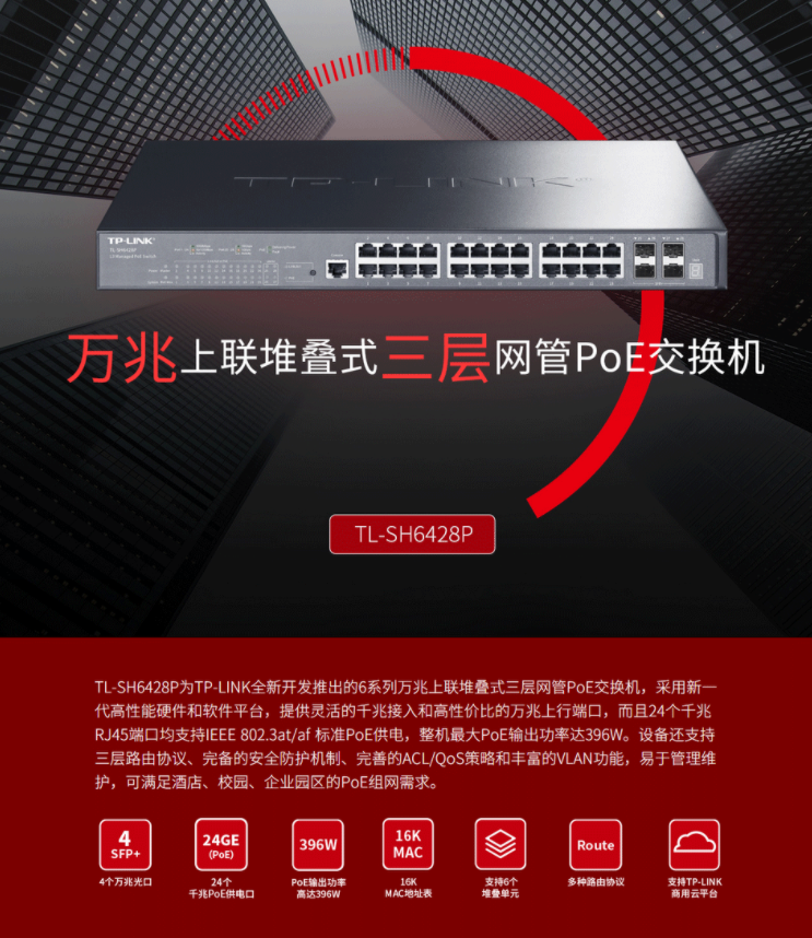 以太網交換機普聯/TP-LINK企業級商用核心交換機 支持VLAN 24口千兆TL-SH6428P/臺